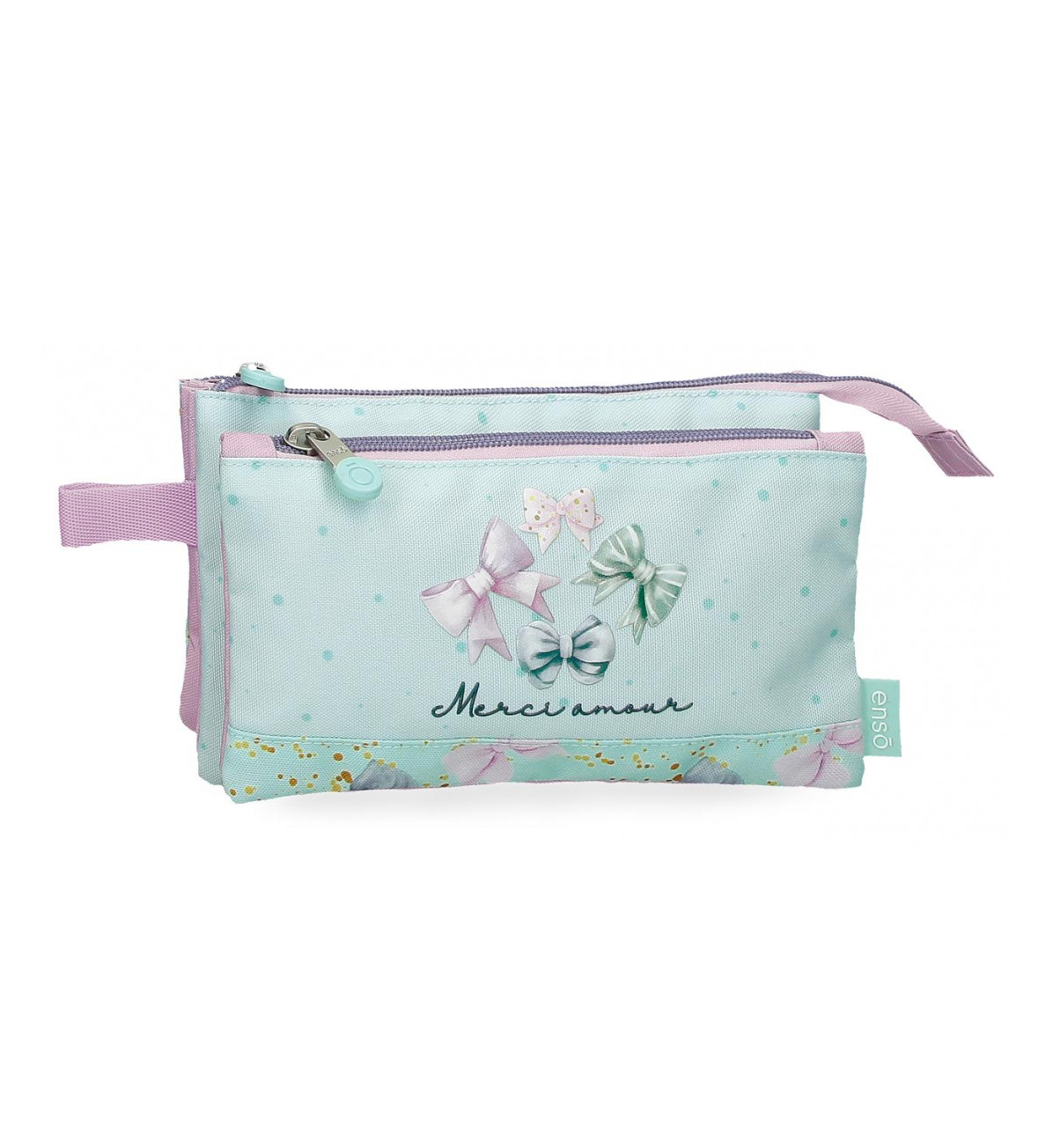 Pernica savršene veličine za nošenje u rancu ili torbi. Tri pregrade sa patentnim zatvaračem omogućavaju idealnu organizaciju. Bočna ručka tu je da Vam pernica uvek bude pri ruci.