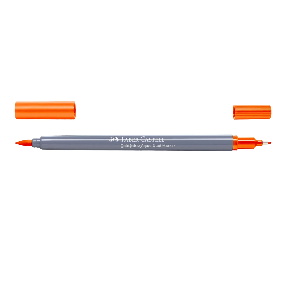 - The Goldfaber Aqua Dual Marker offers versatility with its dual nibs. A soft, flexible brush nib with a 1 to 5mm line width is ideally suited for painting, lettering and artistic work. Create details and contours with the metal-encased 0.6mm fineliner tip. The dual tip marker offers thousands of opportunities for creating stylish lettering, delicate watercolor paintings, preliminary drawings and sketches, comic and mandala art or adding lively color to both large and small areas!