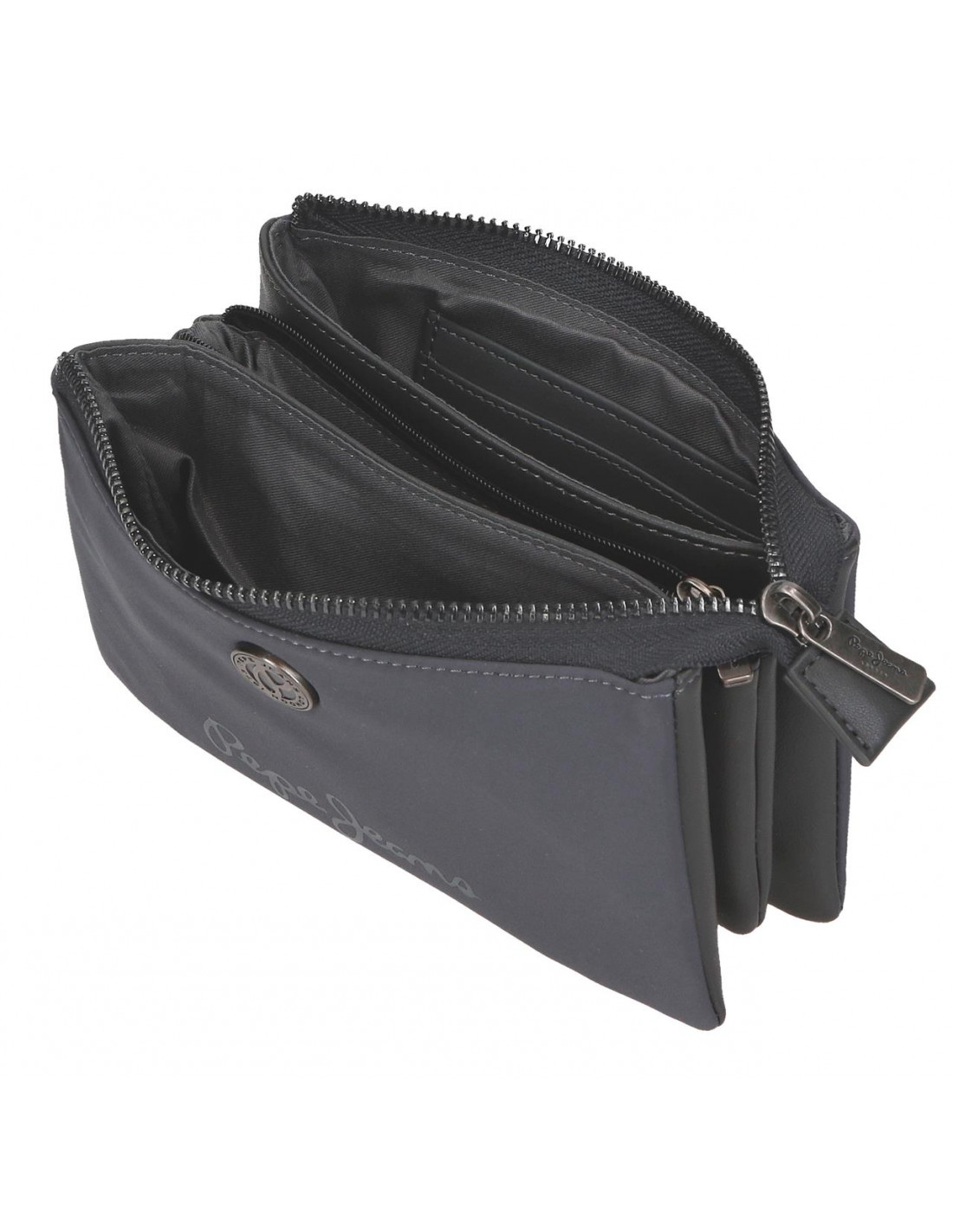 - tri pregrade sa rajsferšlusom, od kojih dve sa po tri otvora za kartice i pregradom sa rajsferšlusom u sredini za novčiće;