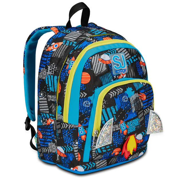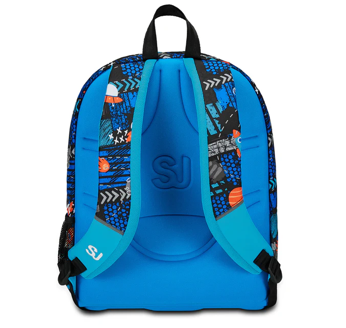 Hello! Are the amazing backpack Advanced SJ GANG ready to accompany you to school in a fun and carefree way! The back and shoulder straps that I am equipped with make me comfortable to wear on the shoulders, while the integrated bottom allows my structure to remain unchanged even at full load. In my large double compartment there is room for everything you need during the day and I also have a side pocket where you can put your canteen.