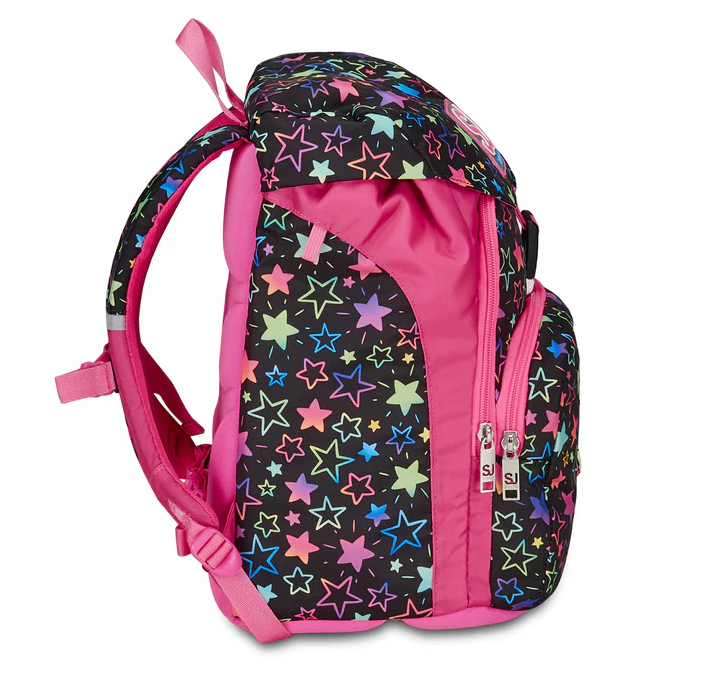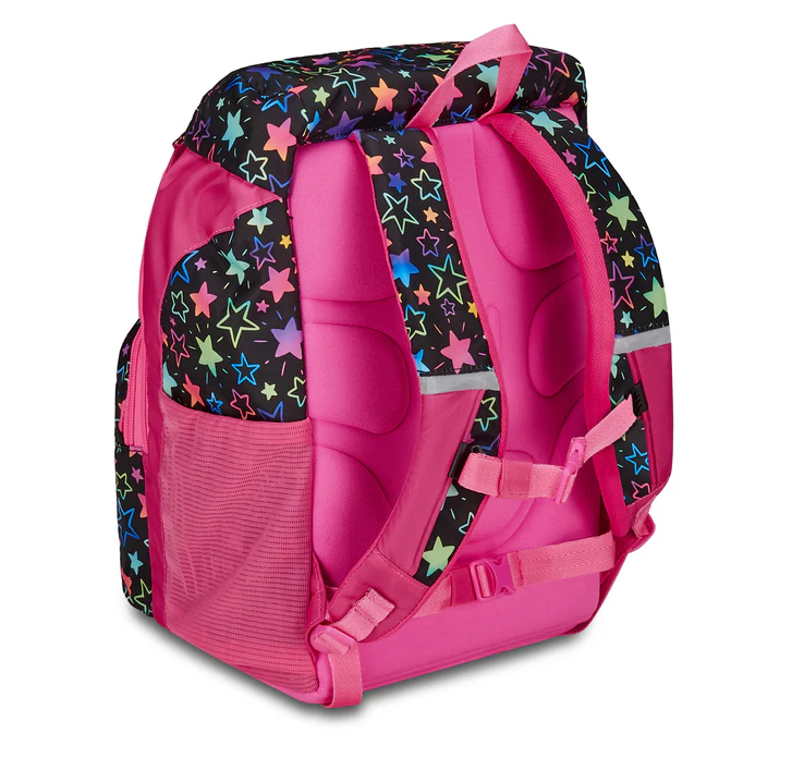 Updown Soft je ergonomska školska torba sa pečatom odobrenja Instituta za zdravlje i ergonomiju (IGR). Inovativni sistem podešavanja na naramenicama za veličine tela od KSS do L. Podesivi kaiševi za kukove i grudi. Proširivi enterijer. Napravljen od 100% reciklirane tkanine.