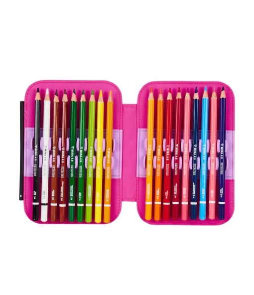 - 44 Pieces: 18 Colored pencils, 18 Washable felt-tip pens, 1 Erasable pen – Blue , 1 Erasable pen – Red, 1 Graphite Pencil, 1 Rubber, 1 Pencil sharpener, 1 Glue stick, 1 Transparent ruler, 1 Scissor
