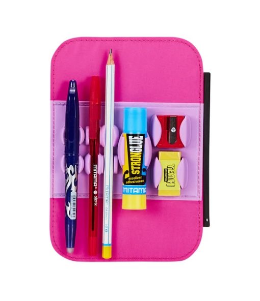 - Opremljena jednim patentnim zatvaračem i uklonjivim tablama sa elastičnom trakom za olovke i držačima za olovke, koje možete potpuno ukloniti, da operete svoju pernicu ili u nju stavite šta god želite. Sadrži pribor vrhunskog kvaliteta.