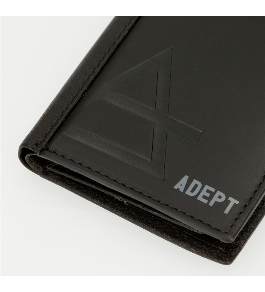 ADEPT proizvodi su dizajnirani za one koji znaju šta im je potrebno na dnevnoj bazi. Ova kolekcija novčanika je napravljena sa najvećom pažnjom. Postoje različite veličine i formati dizajnirani za maksimalnu funkcionalnost. Proizvodi su izrađeni od prave kože. Ovaj format je jednostavan i ima glavnu pregradu sa zatvaračem, poseban džep i dva otvora za kartice. Savršen je za one koji vole da nose osnovne stvari. Adept je brend kvalitetnih funkcionalnih dodataka sa sopstvenim stilom.